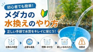 メダカを新しい水槽に移すときの水合わせの手順を初心者向けに解説。水合わせを失敗するとメダカが死んでしまう原因に。正しいやり方と注意点をわかりやすく紹介します。